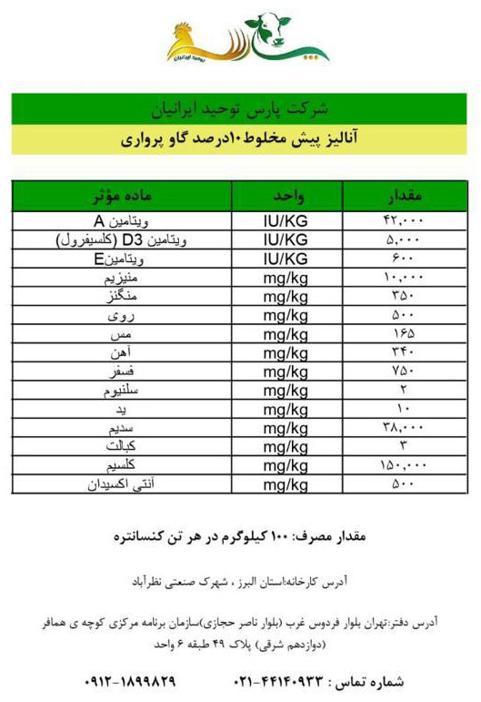 پیش مخلوط های ویتامینه و معدنی گاو پرواری